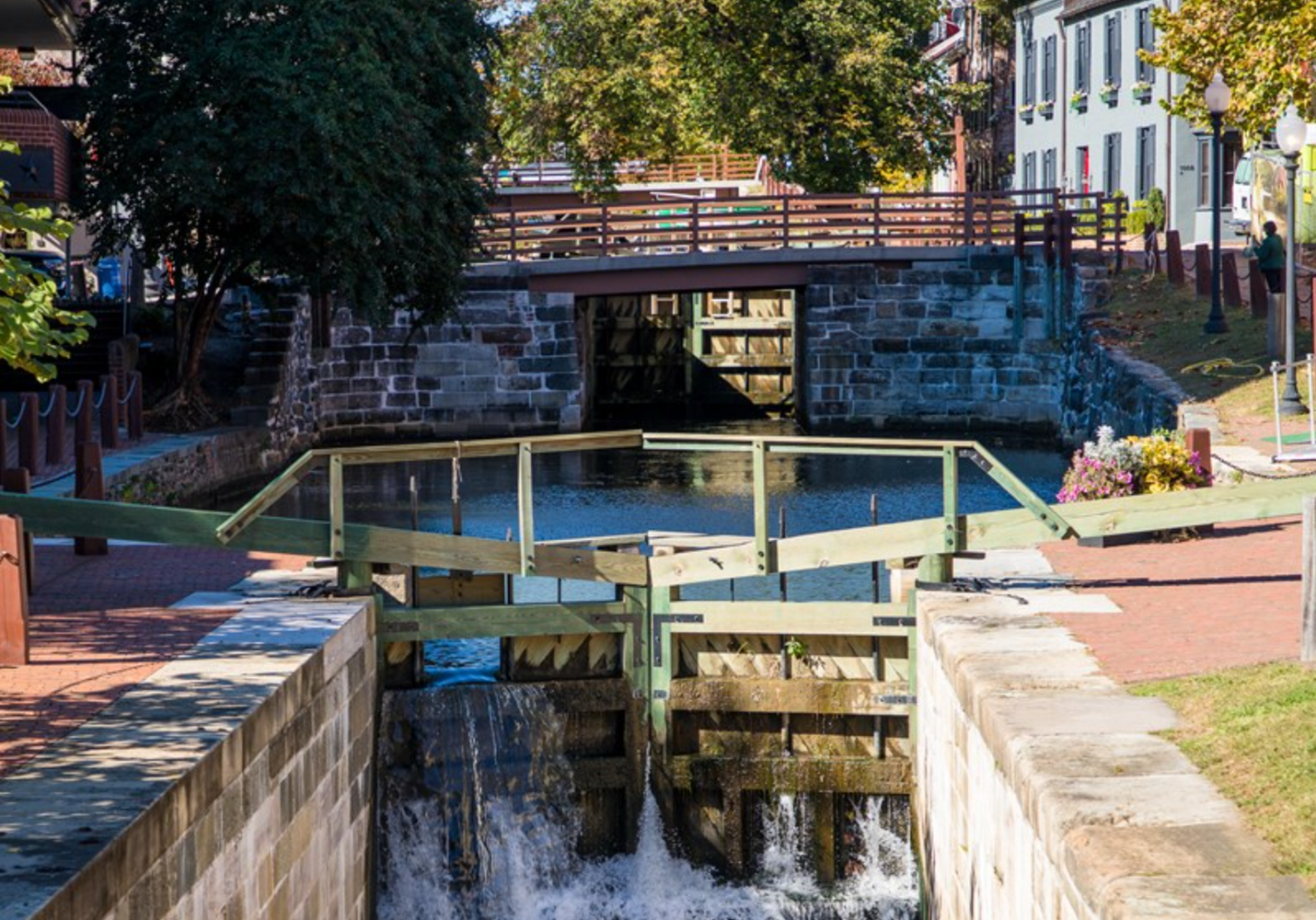 31 miles – Our final day begins with a shuttle ride back to the trail, where we follow the towpath alongside the two large dams of the Potomac. Snack break is at the amazing Great Falls Park, which we then follow for several miles along the falls of the river. Our endpoint, Mile 0, is in Georgetown, near the heart of Washington D.C. Explore Georgetown and grab lunch where you want, then we'll load into the van and head across the river to our accomodations for the last night of the tour, Wainwright Hall on board historic Fort Myer, adjacent to Arlington National Cemetery and home to the Army's Old Guard.